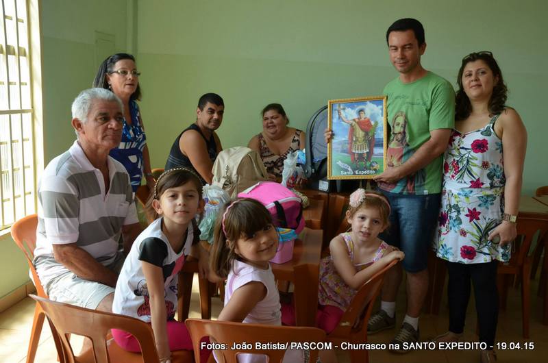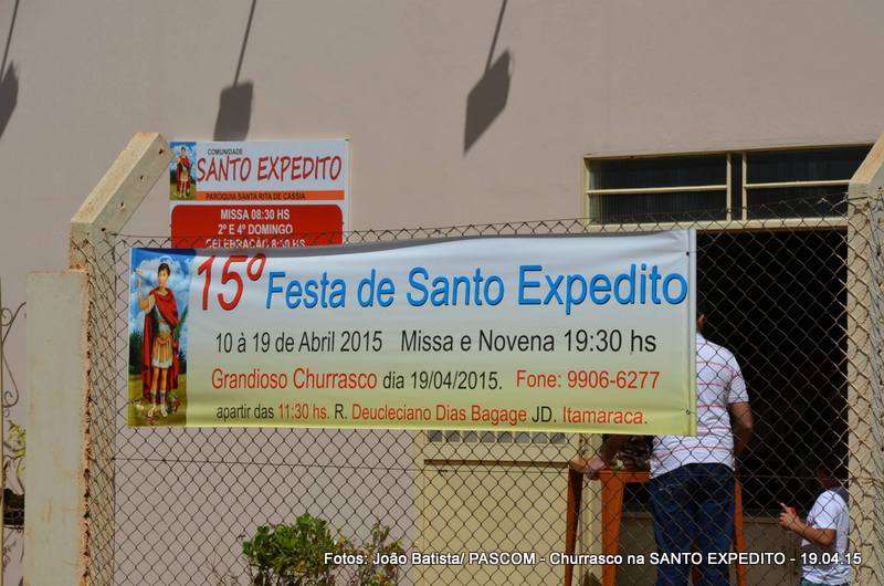 A Comunidade Santo Expedito, promoveu neste domingo(19/04/2015), um delicioso Churrasco, por apenas R$ 25,00 (vinte reais) por pessoa, com refrigerante e água mineral, não sendo servido bebidas alcoólica, em comemoração ao dia do Padroeiro celebrado no dia de hoje (19 de abril). São 15 anos de caminhada comunitária – 2.000 a 2015.
