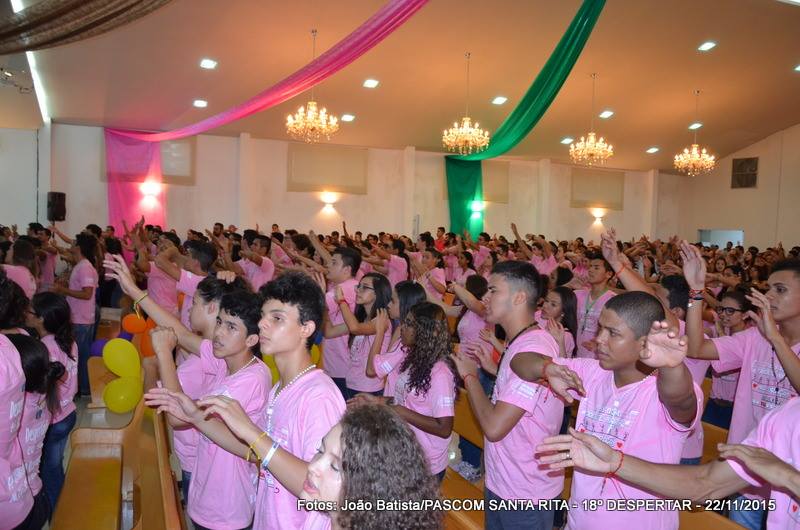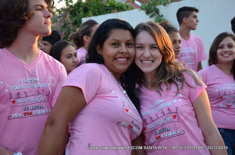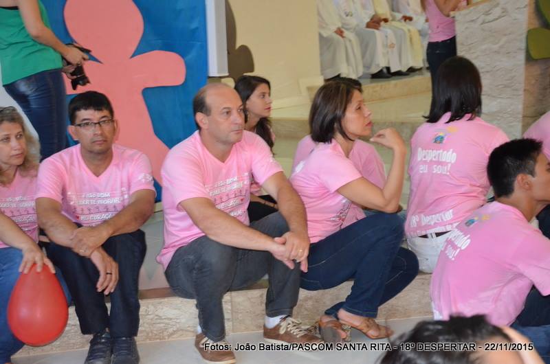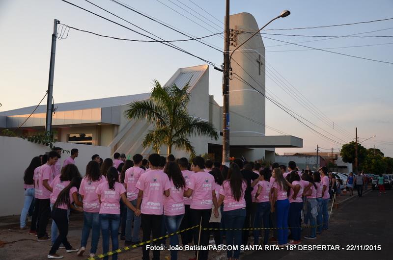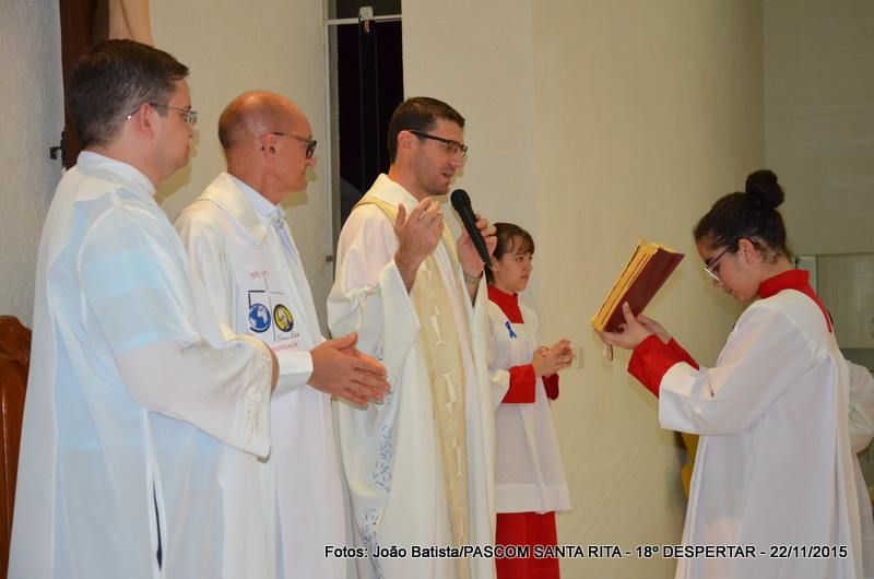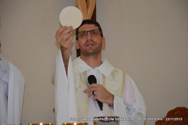 Neste domingo, 22 de novembro/2015, às 18:30 horas, a Igreja Matriz de Santa Rita de Cássia, completamente lotada, foi celebrada a Santa Missa de encerramento do 18º DESPERTAR da juventude das paróquias palotinas de Campo Grande (paróquia São Judas Tadeu, paróquia Santa Rita de Cássia, paróquia Divino Espírito Santo e paróquia São Martinho de Lima). A Celebração foi presidida pelo Padre Andriano José Dalmolin, pároco da Paróquia São Martinho de Lima e concelebrada pelo Padre Sérgio Luiz Coldebella, pároco da Paróquia Santa Rita de Cássia, contando ainda com a presença do Frater: Elvin Limberger da Paróquia Divino Espírito Santo e Wellington Macedo da Paróquia Santa Rita de Cássia e as Irmãs Pastorinhas, Irmãs Palotinas e Irmãs Scalabrinianas.
