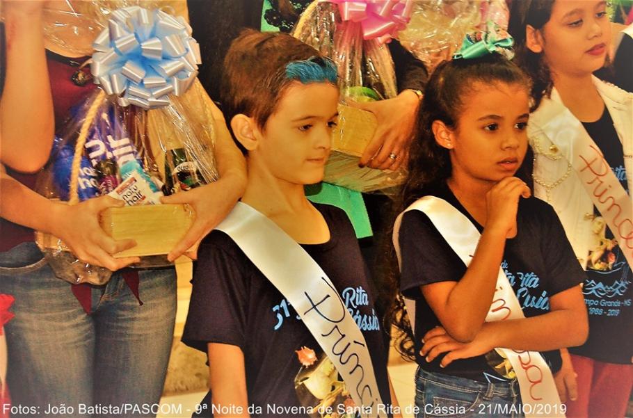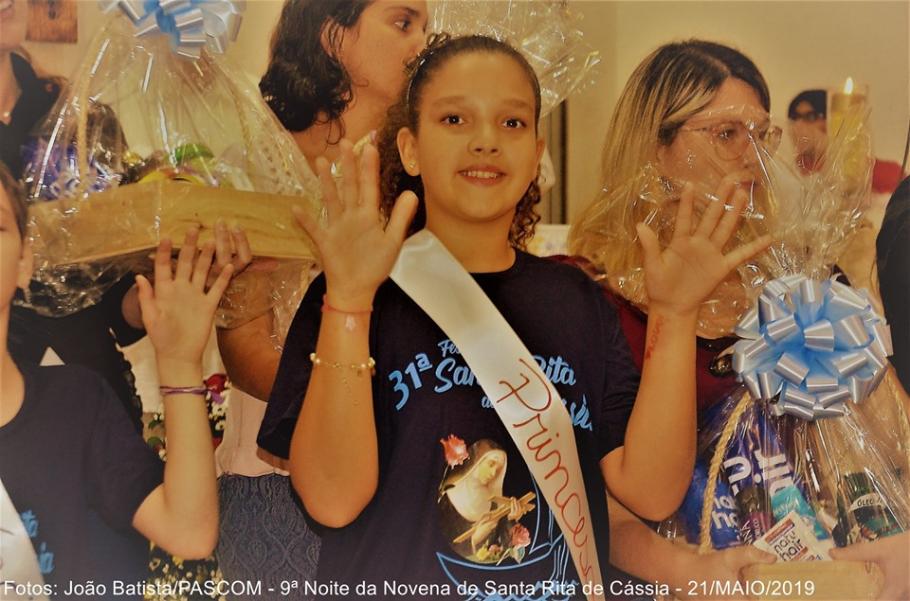 A apresentação da RAINHA e do REI foi um momento de muita alegria para os familiares e convidados: Foram proclamadas vencedores todas as candidatas e candidatos, com idade entre 8 e 12 anos, das Comunidades da Paróquia que se inscreveram para concorrer ao título de  RAINHA e REI da Santa Rita/2019. Todas foram declaradas oficialmente vencedoras. Os/as candidatos e candidatas arrecadaram para a paróquia um total de R$ 33.221,00 (trinta e três mil duzentos e vinte e um reais). A equipe responsável pela organização, acompanhamento e apuração do resultado final das candidatas/os a Rainha e Rei foi executado pela Irmã Nilva, Maria Antônia e Neide Canhete.