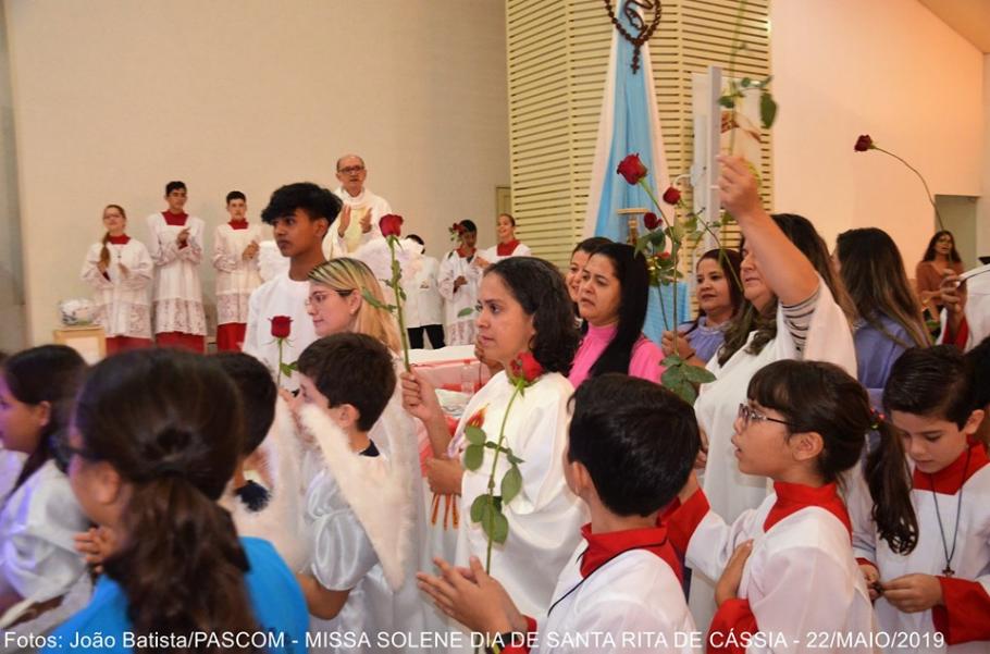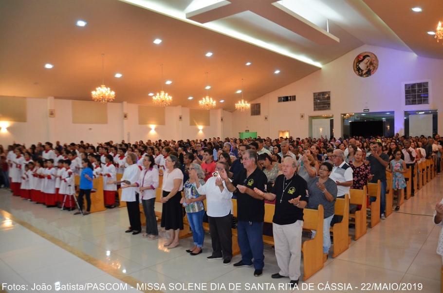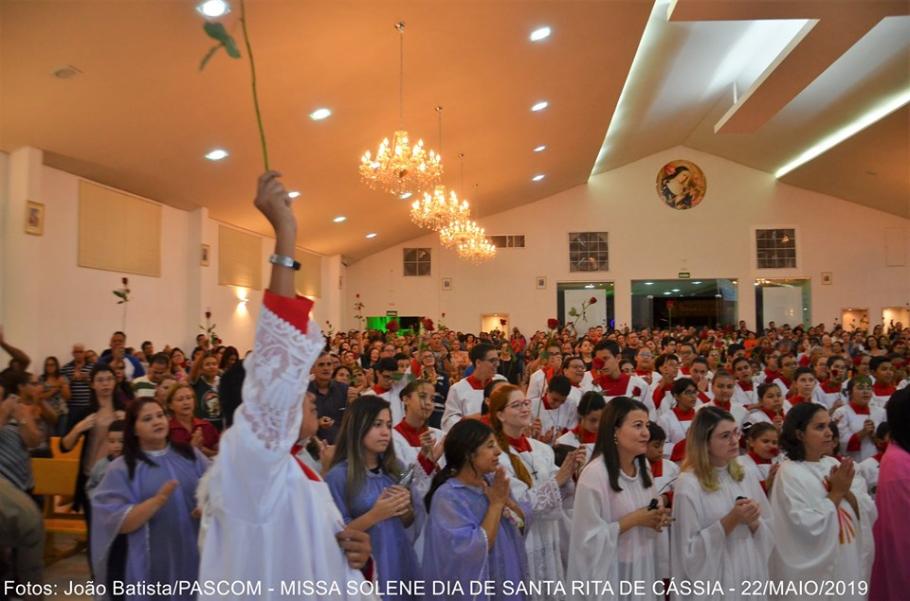 A Celebração Eucarística desta quarta-feira(22/05/19), dia de Santa Rita de Cássia, com a Igreja Matriz completamente lotada pelos devotos de Santa Rita de Campo Grande e do interior do Estado. A Celebração Eucarística foi presidida pelo padre Sérgio Coldebella, pároco da paróquia Santa Rita de Cássia e concelebrada pelo padre Vitório e padre Geraldo. A Liturgia foi conduzida pela equipe da Comunidade Santa Rita.