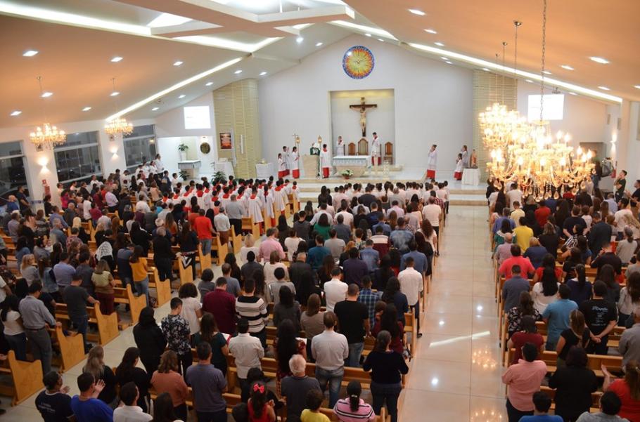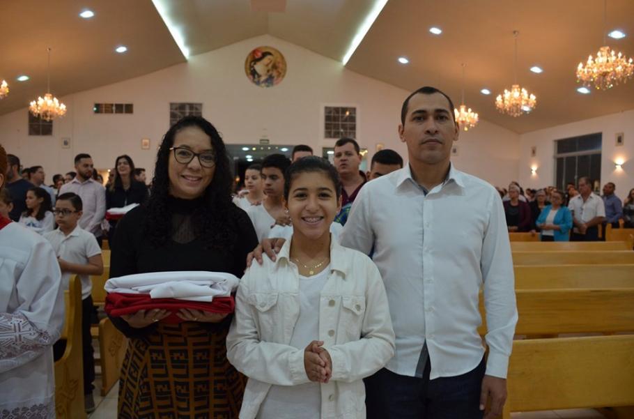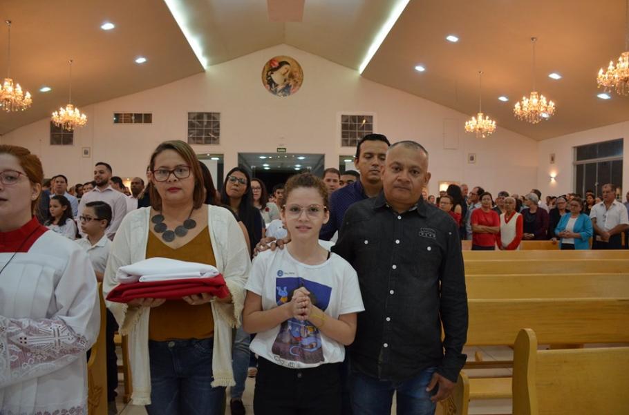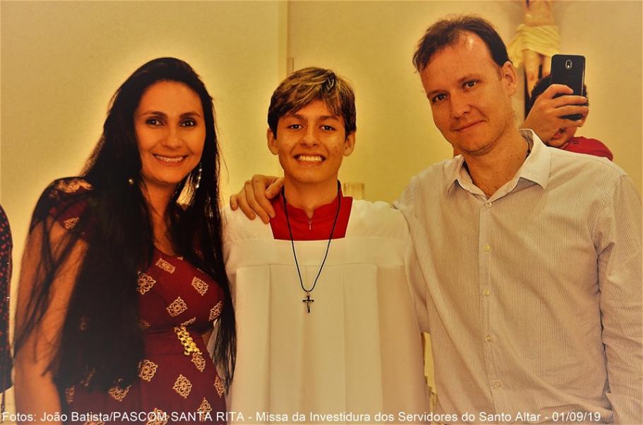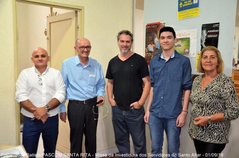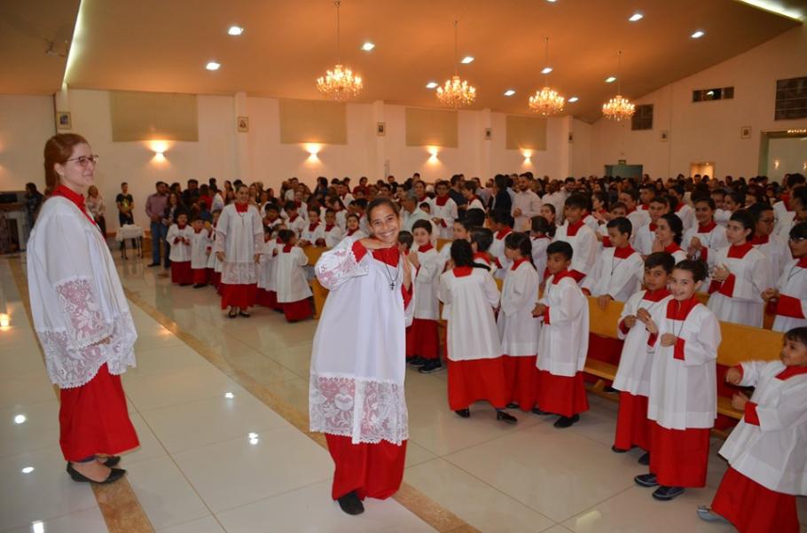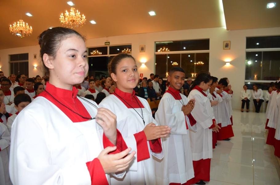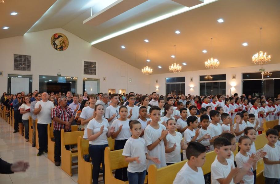 Neste domingo, (01/09/2019), às 18h30min., a Santa Missa, presidida pelo Pe. Sérgio Coldebella, pároco da paróquia Santa Rita de Cássia. Durante a Santa Missa o Pe. Sérgio apresentou, abençoou e investiu os novos Servidores do Santo Altar da Paróquia Santa Rita de Cássia, na presença dos pais, padrinhos e familiares dos novos Servidores e demais convidados presentes na celebração. Foram investidos 37(trinta e sete) novos Servidores do Santo Altar, crianças e adolescentes da Matriz Santa Rita e de suas Comunidades.