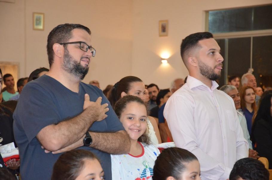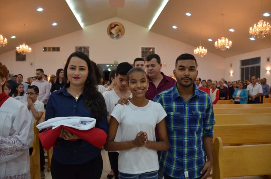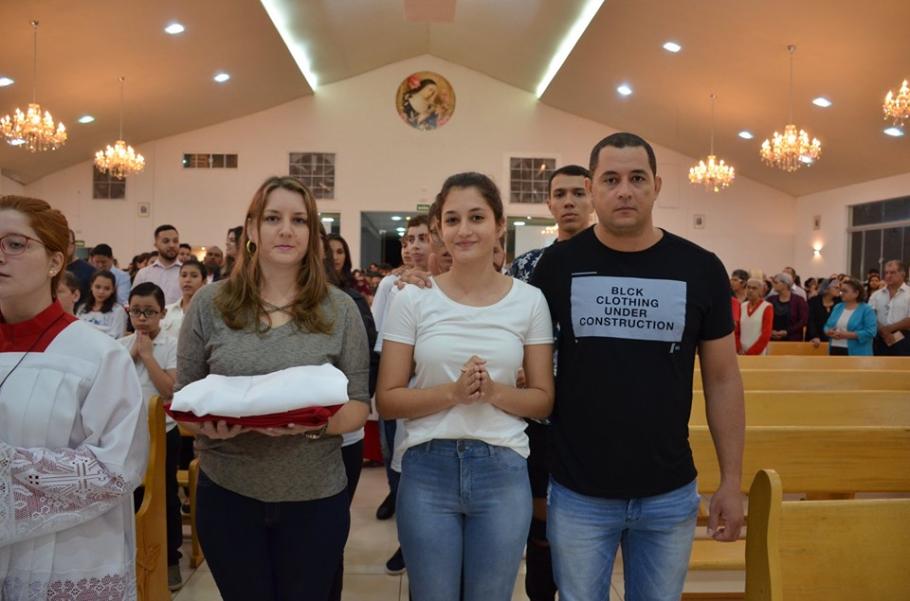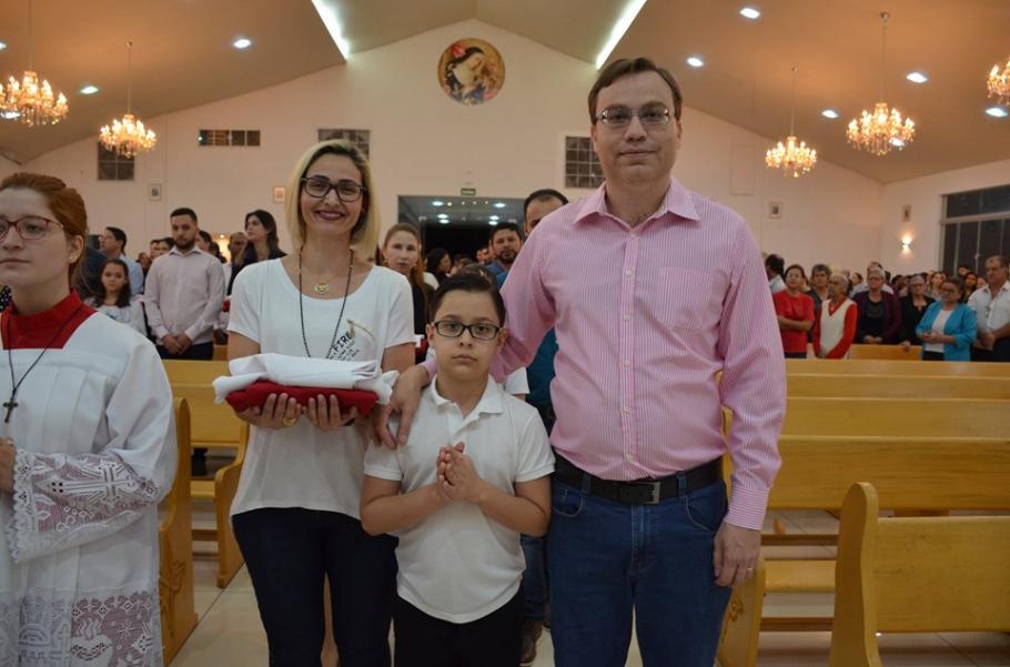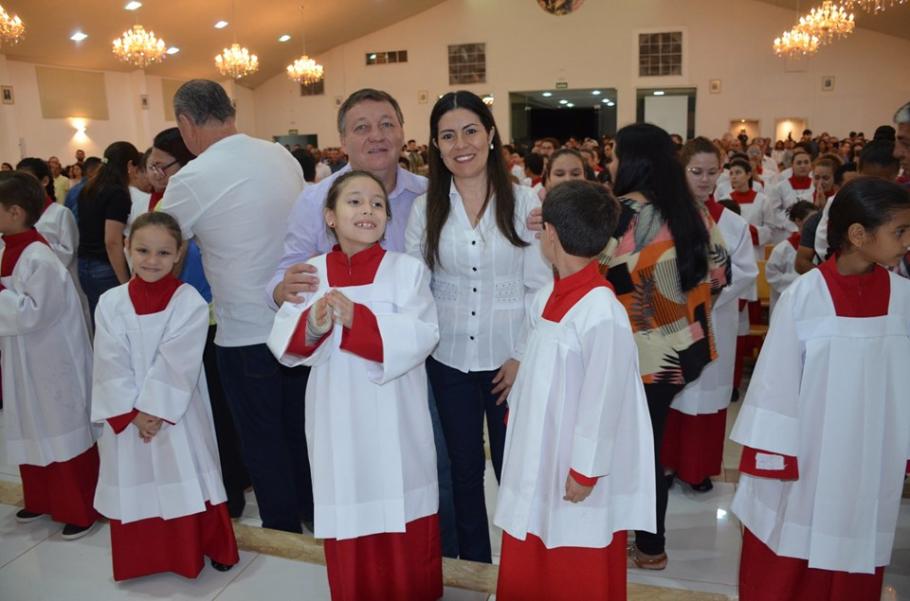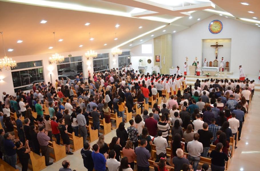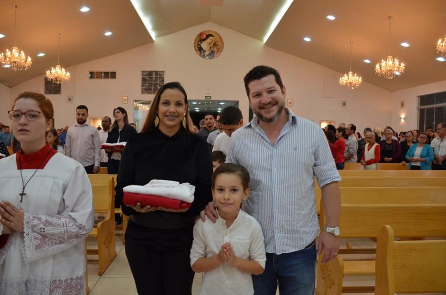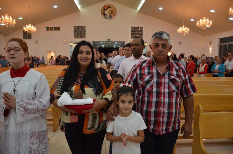 Neste domingo, (01/09/2019), às 18h30min., a Santa Missa, presidida pelo Pe. Sérgio Coldebella, pároco da paróquia Santa Rita de Cássia. Durante a Santa Missa o Pe. Sérgio apresentou, abençoou e investiu os novos Servidores do Santo Altar da Paróquia Santa Rita de Cássia, na presença dos pais, padrinhos e familiares dos novos Servidores e demais convidados presentes na celebração. Foram investidos 37(trinta e sete) novos Servidores do Santo Altar, crianças e adolescentes da Matriz Santa Rita e de suas Comunidades.