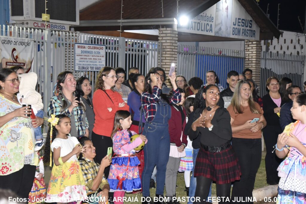 Tivemos a honra de receber o Pe. Nelson Taffarel e o querido Tobias, que tornaram a noite ainda mais especial. E pra fechar com chave de ouro, duas quadrilhas encantaram o público: a Quadrilha improvisada com as crianças da Catequese e, logo em seguida, a Grandiosa Quadrilha dos Adultos, que arrancou aplausos e sorrisos!
