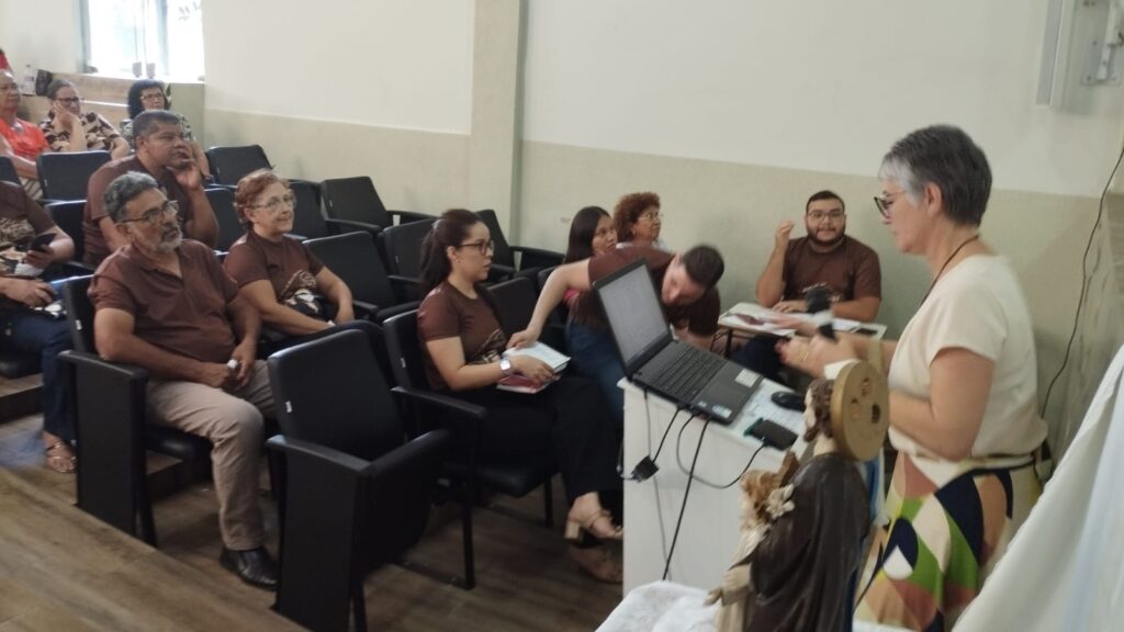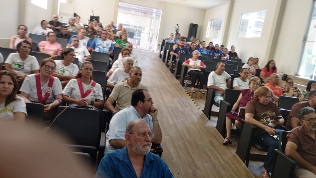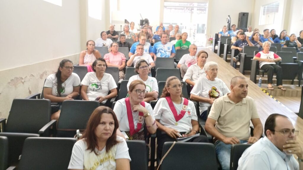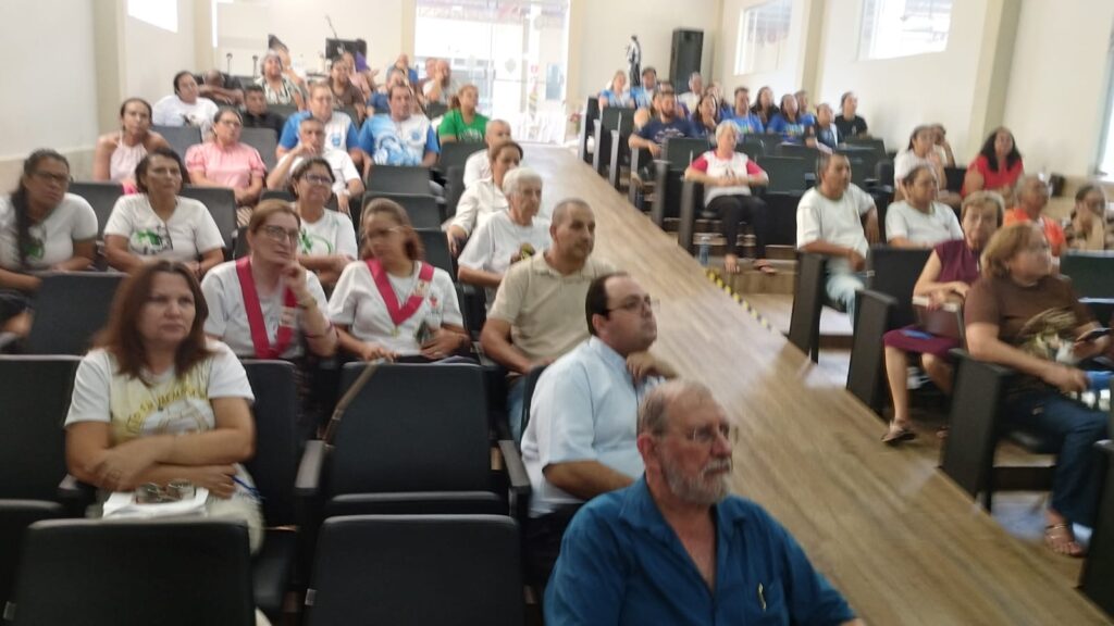 Após a Santa Missa as lideranças dirigiram-se ao auditório paroquial. A plenária contou com a presença expressiva dos coordenadores das sete comunidades que compõem paroquia, além da presença dos palotinos: Pe. Nelson Taffarel, Pároco, e Pe. Tobias, Vigário Paroquial. A vida consagrada também se fez representar pelas Irmãs Pastorinhas, Renata e Glória, reforçando o carisma de serviço e a unidade na diversidade de vocações.