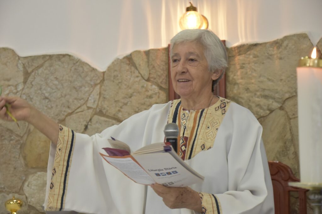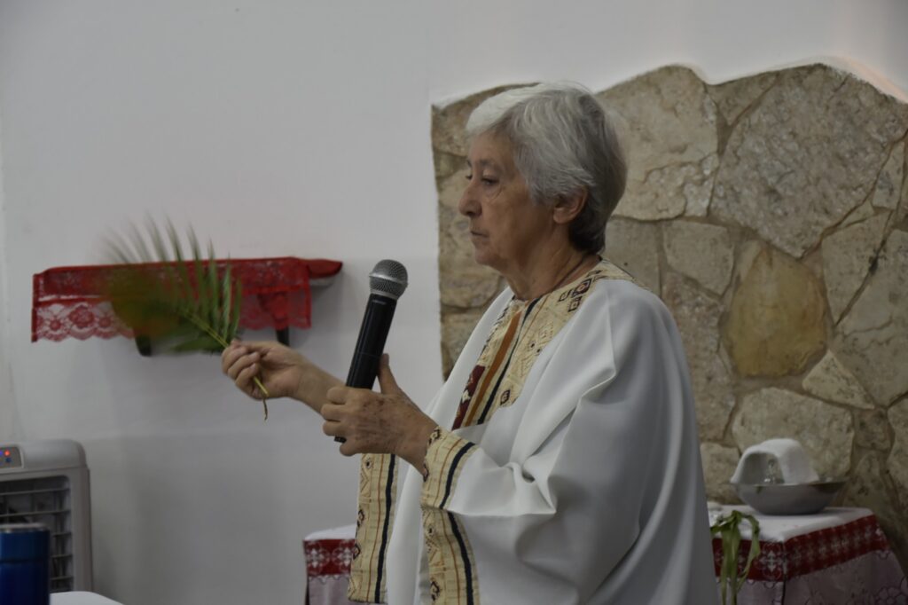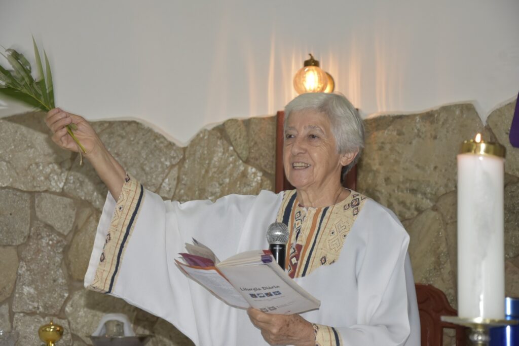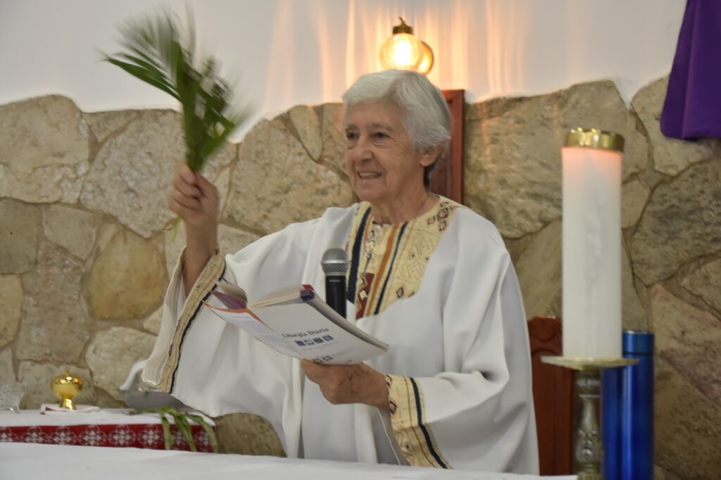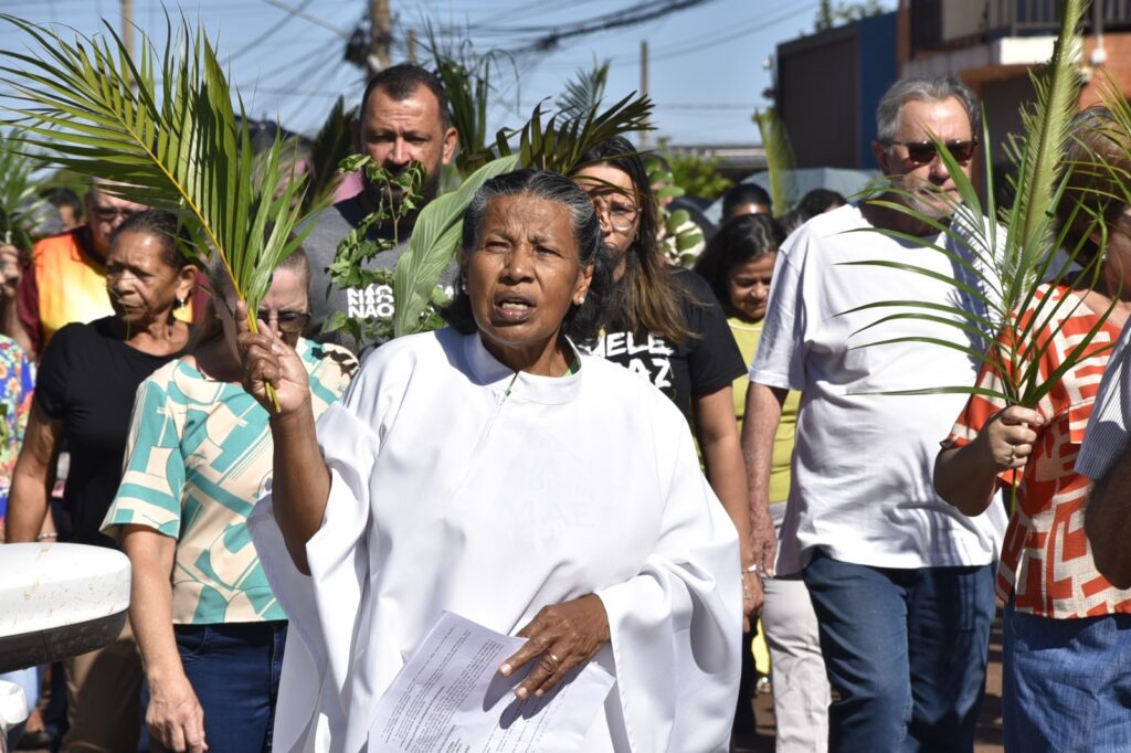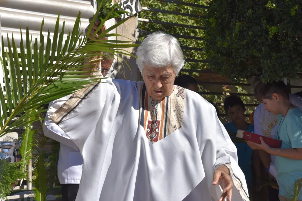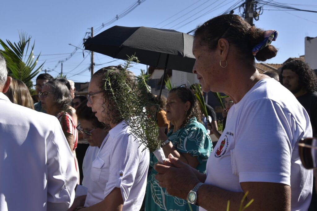 Logo após esse momento, a assembleia seguiu em procissão, conduzindo seus ramos e entoando cânticos litúrgicos, retornando à igreja para a continuidade da celebração. A Celebração foi presidida pela Irmã Glória (Pastorinha), com a participação de todos os Ministros da Comunidade, que auxiliaram com zelo e dedicação.