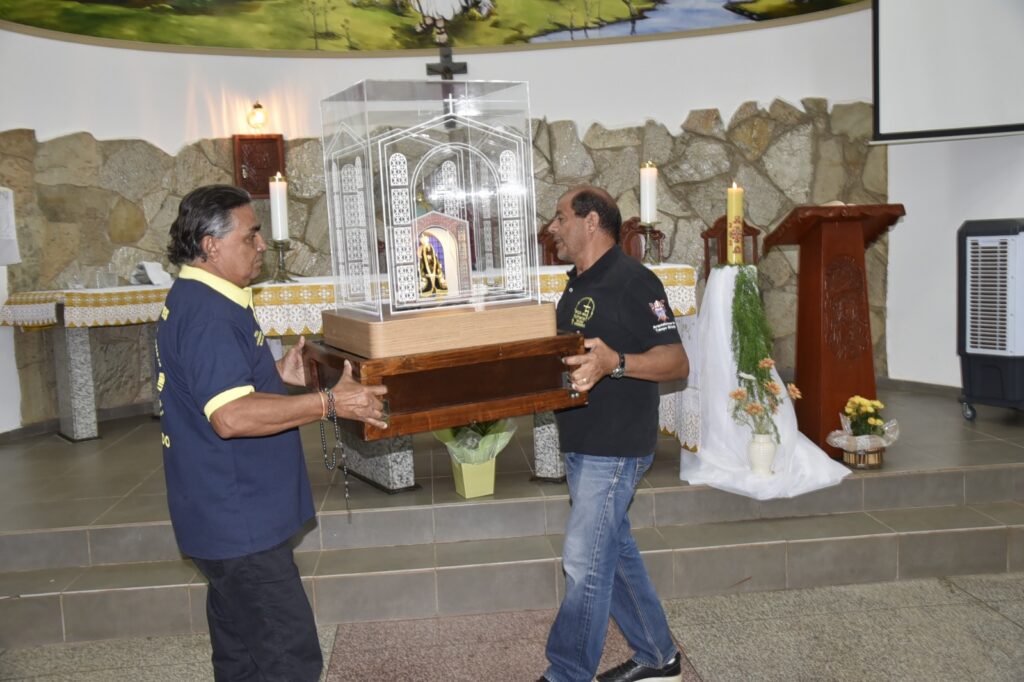 Nesta segunda-feira, 07/04/2026, a Comunidade Jesus Bom Pastor reuniu-se para a Celebração da Palavra, presidida pelo Diácono Valdeir. Em clima de profunda fé e alegria espiritual, a comunidade acolheu, com devoção, a réplica da imagem peregrina de Nossa Senhora Aparecida, Mãe e Padroeira do Brasil. Sua presença maternal entre nós renovou os corações na confiança no amor de Deus e reacendeu a esperança que Maria continuamente aponta aos seus filhos.