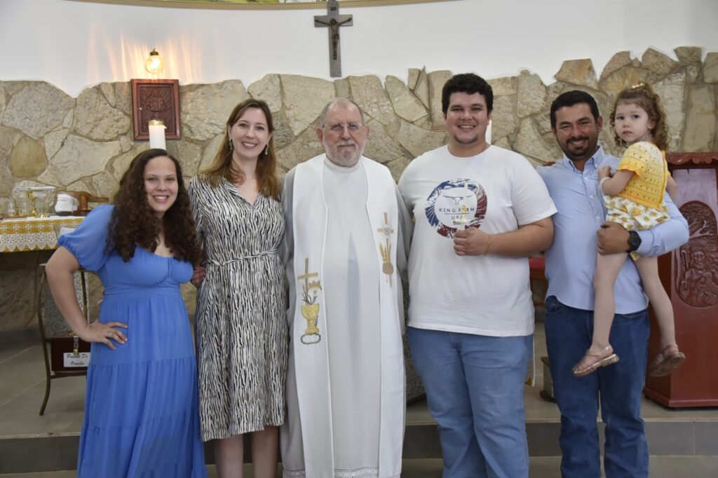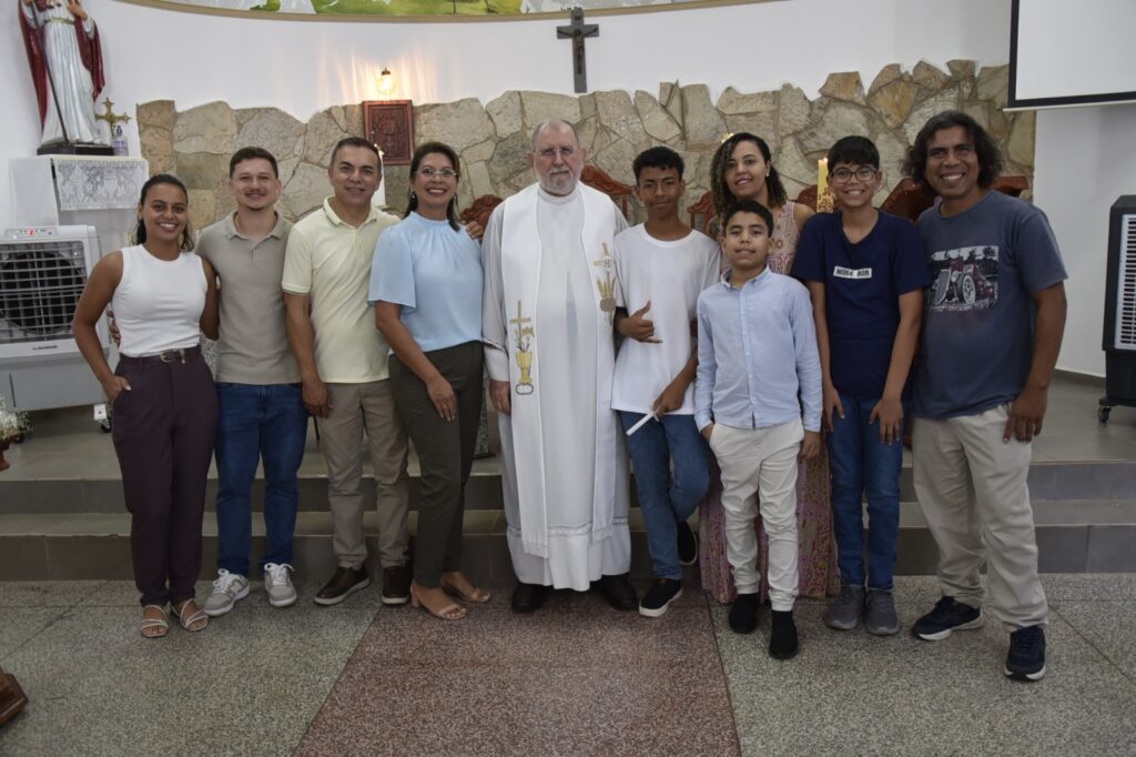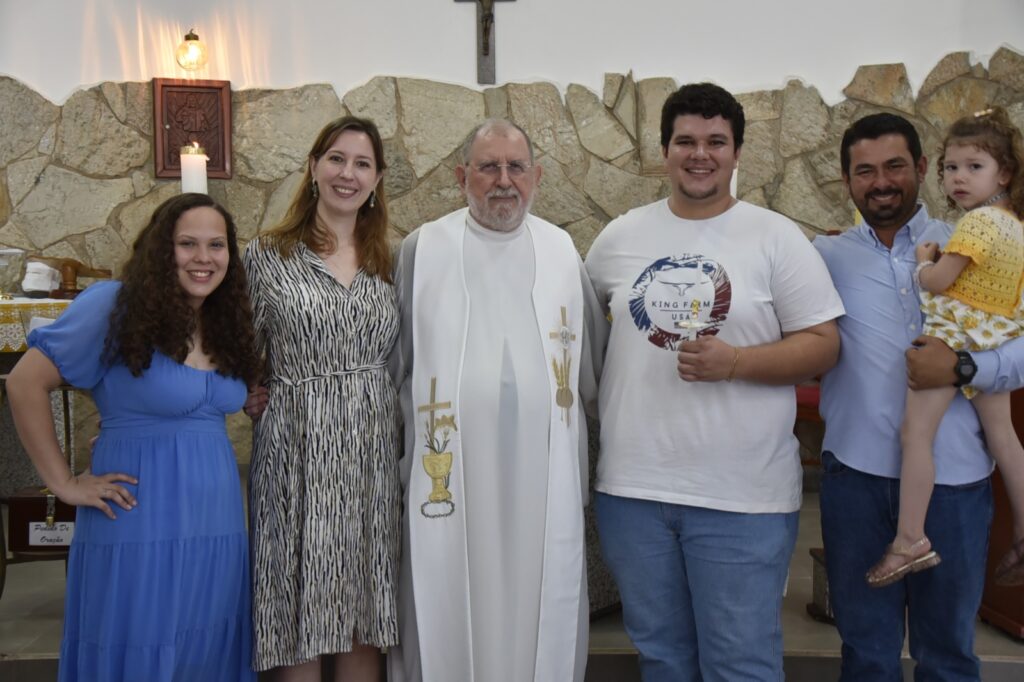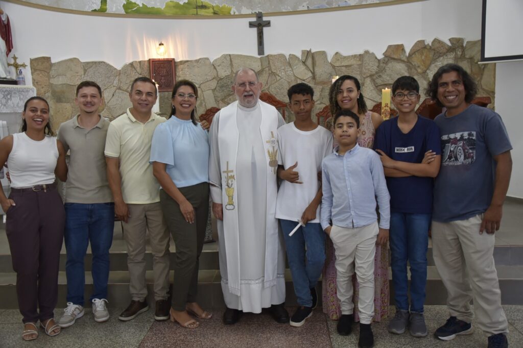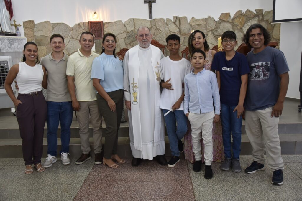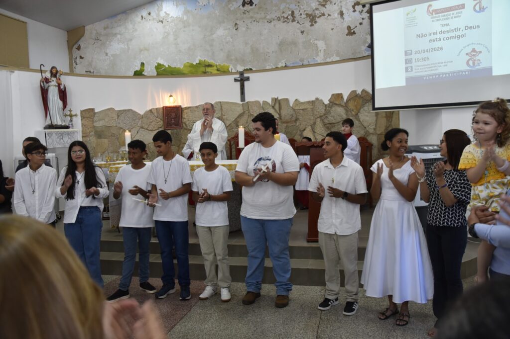 A Comunidade Jesus Bom Pastor viveu um momento especial de graça e alegria na manhã deste domingo, 19 de abril de 2026, durante a Santa Missa das 8h30, presidida pelo Padre Nelson Taffarel, pároco da Paróquia Santa Rita de Cássia. Nesta celebração, marcada pela espiritualidade do 3º Domingo da Páscoa, iluminada pelo Evangelho dos Discípulos de Emaús, foram acolhidos ao seio da comunidade seis jovens e adolescentes que receberam o Sacramento do Batismo.