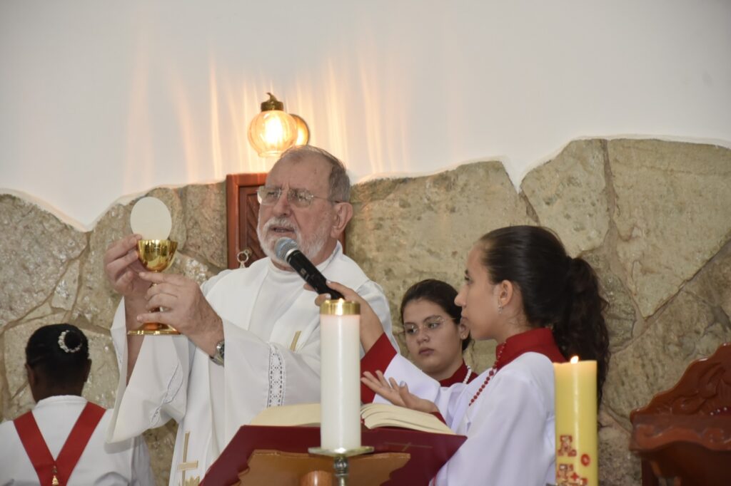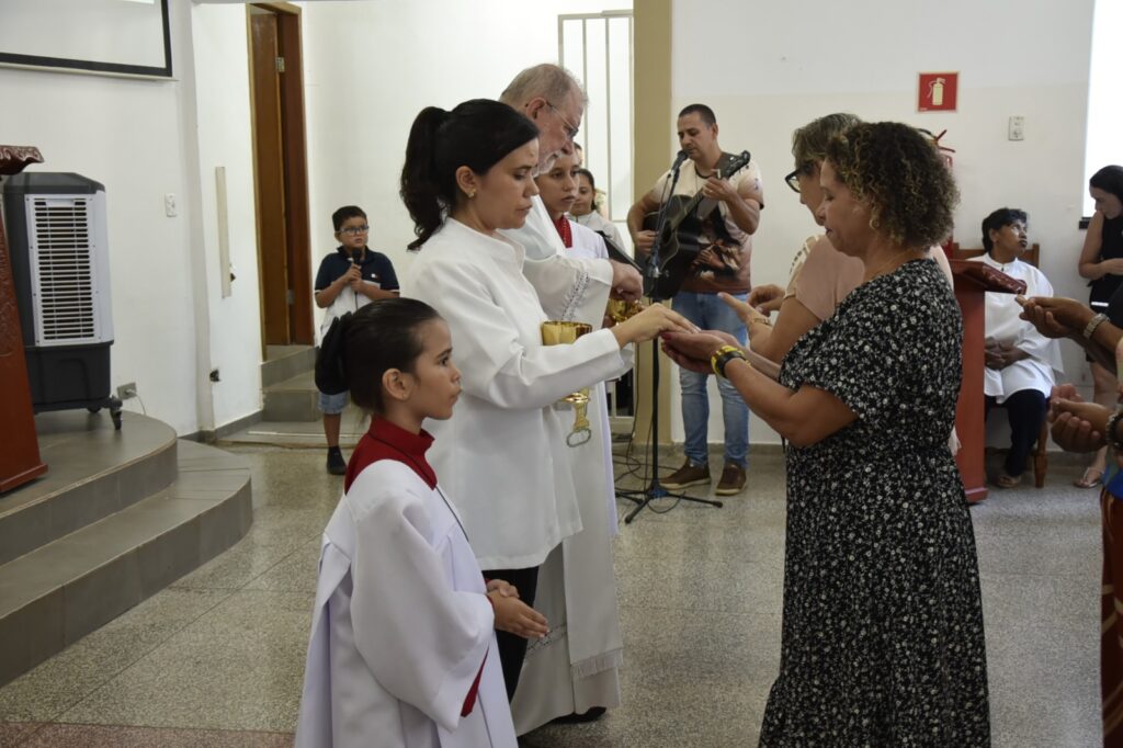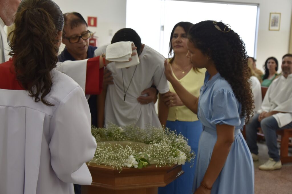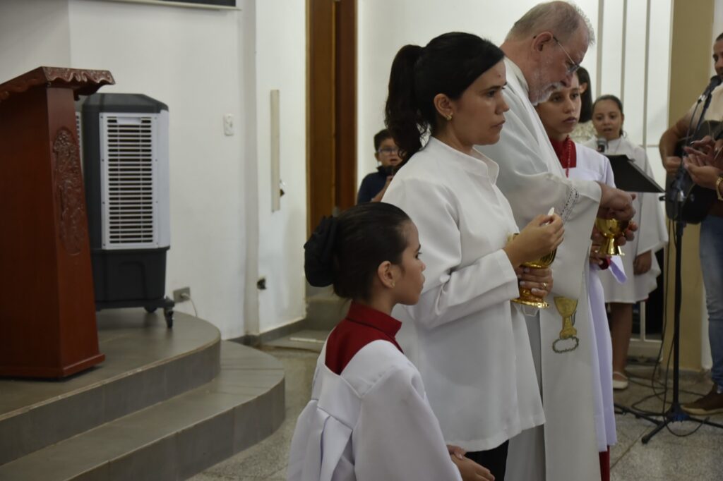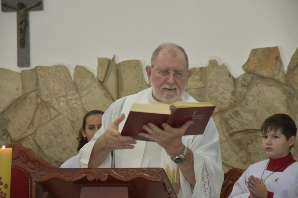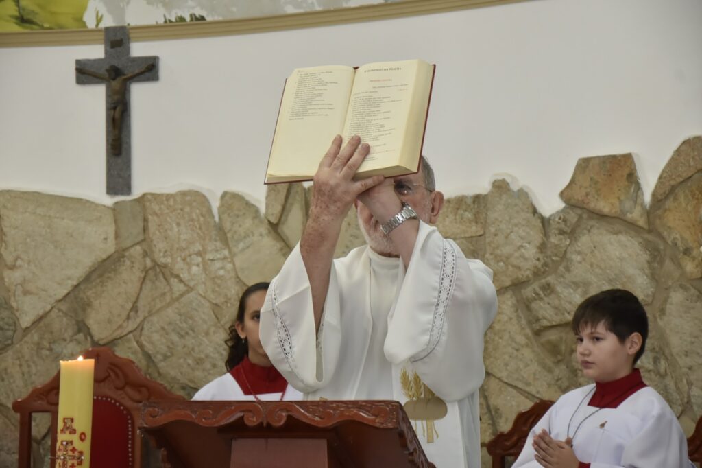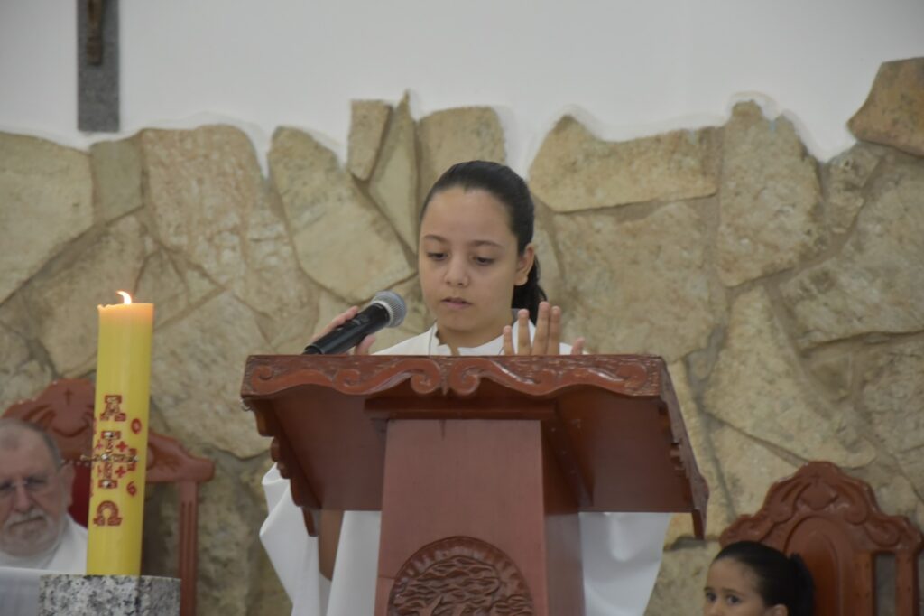 A Comunidade Jesus Bom Pastor viveu um momento especial de graça e alegria na manhã deste domingo, 19 de abril de 2026, durante a Santa Missa das 8h30, presidida pelo Padre Nelson Taffarel, pároco da Paróquia Santa Rita de Cássia. Nesta celebração, marcada pela espiritualidade do 3º Domingo da Páscoa, iluminada pelo Evangelho dos Discípulos de Emaús, foram acolhidos ao seio da comunidade seis jovens e adolescentes que receberam o Sacramento do Batismo.