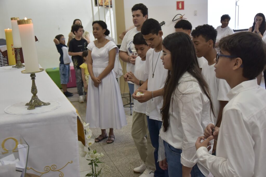 A Comunidade participou com grande entusiasmo, testemunhando este passo significativo na vida de fé dos jovens batizandos. O clima pascal, de encontro com o Cristo Ressuscitado, reforçou o compromisso de toda a comunidade em acompanhar e apoiar a caminhada desses novos irmãos na vida cristã.